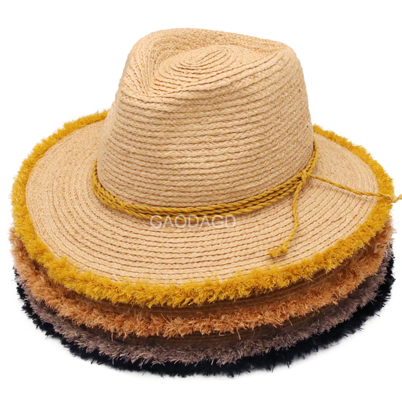 Wheat straw is a byproduct of wheat farming. It is durable and wear-resistant. A finely woven and stitched wheat straw hat was made, available in various styles and designs. A wheat straw hat has a glossy feel and a strong sense of style, making it one of the popular fashion accessories for summer. Wheat straw hats are usually lightweight and easy to carry and use, making them convenient for outdoor activities and travel. They are also biodegradable and eco-friendly, breaking down naturally over time without leaving harmful residues.